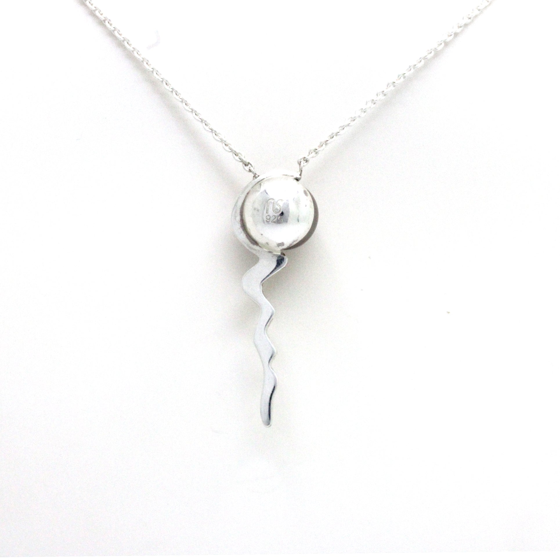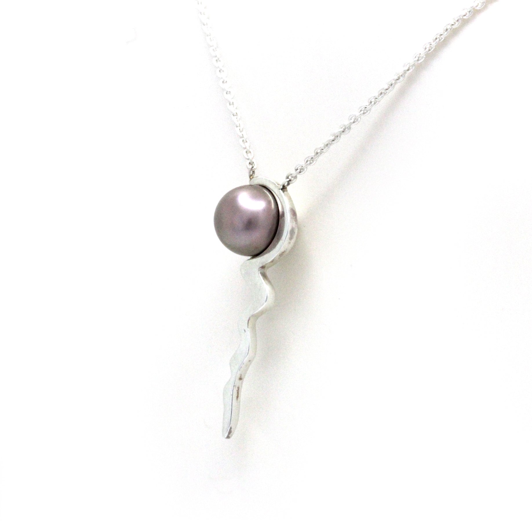 Un hermoso collar de estilo moderno y contemporáneo se añade a nuestro catálogo, trabajado en plata 0.925 por la diseñadora mexicana "NS". Para darle vida a la pieza, se le colocó una Perla del Mar de Cortez.