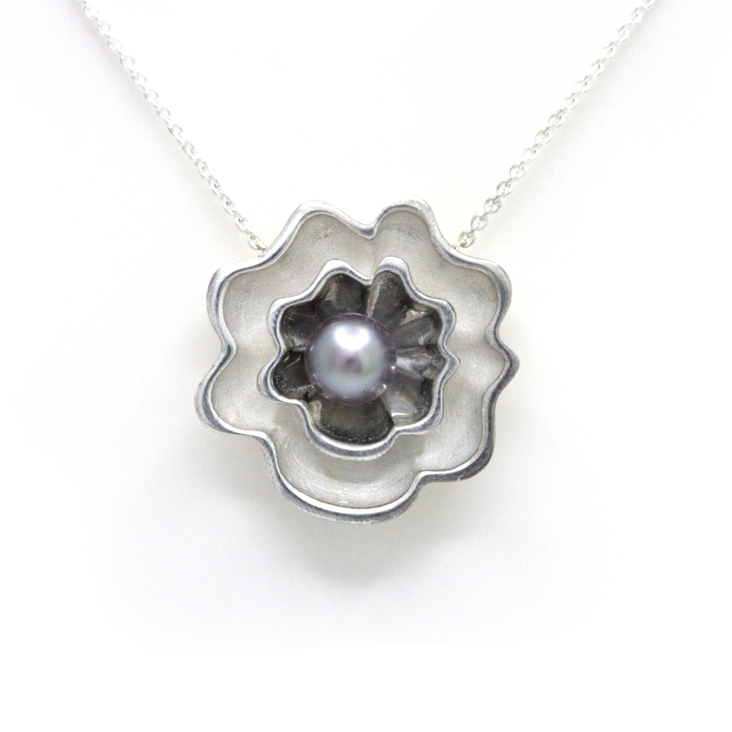 "Olanes" Silver Necklace with Cortez Pearl by "Noble Sensación"