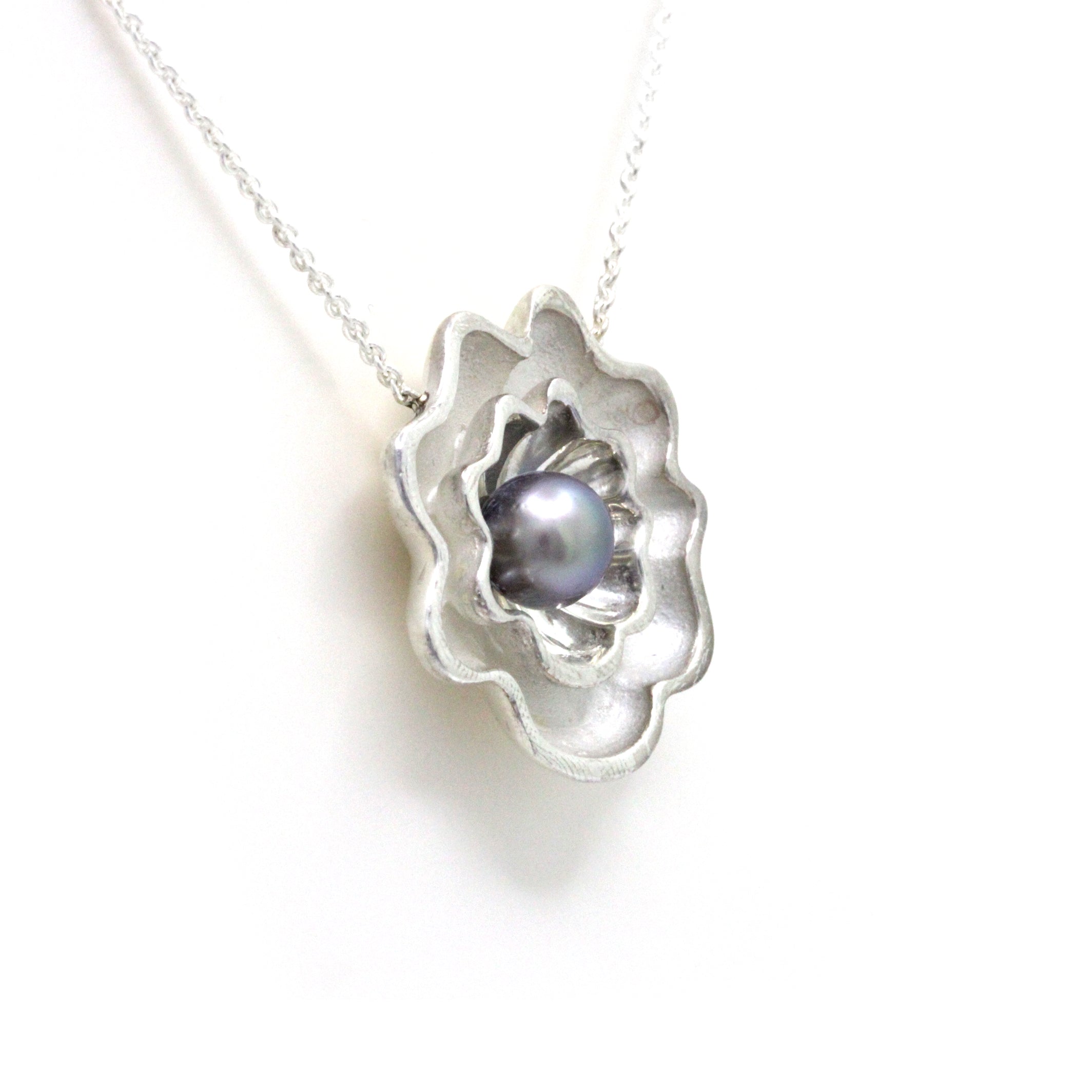 Un hermoso collar de estilo moderno y  contemporáneo se añade a nuestro catálogo, trabajado en plata 0.925 por la diseñadora mexicana "NS". Para darle vida a la pieza, se le colocó una Perla del Mar de Cortez.
