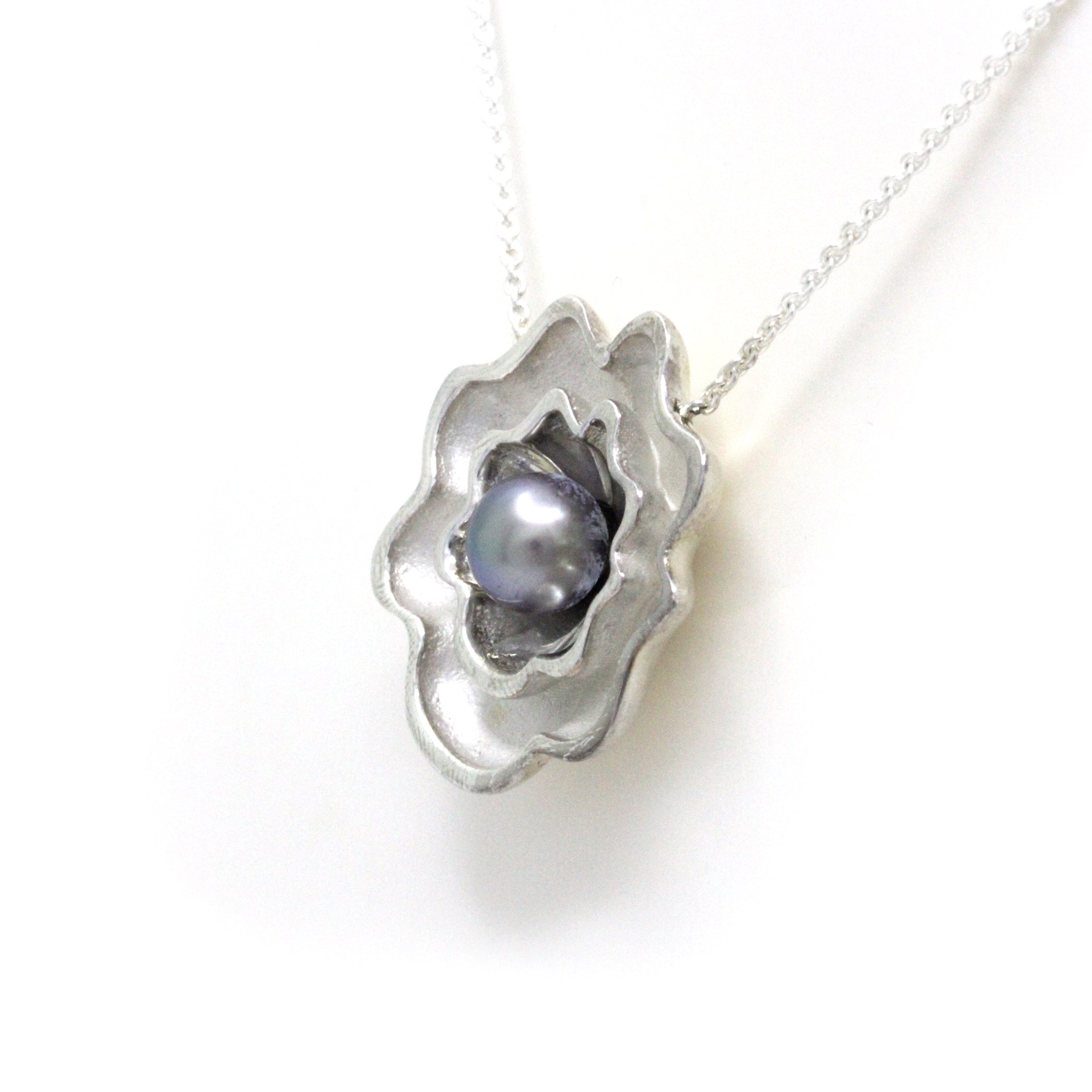 This is a new necklace designed by "NS" made by hand on sterling silver (0.925) with a beautiful Cortez Pearl. This pearl has an amazing luster that allows to see your reflect on the surface almost like a mirror, in addition, has a very unique light- iridescent overtones on it, depending on the light you'll appreciate them better. Features as incredible as its unique shape.