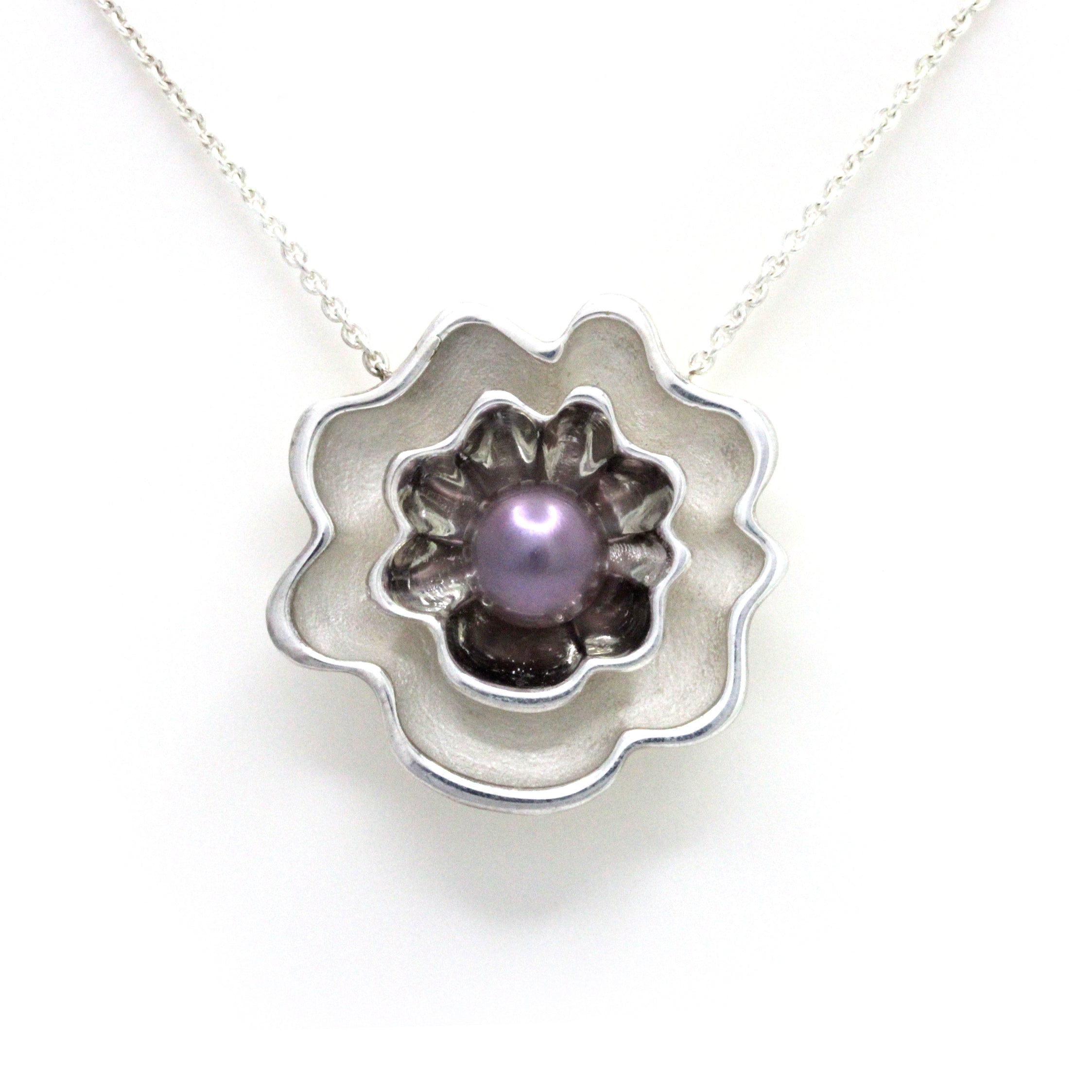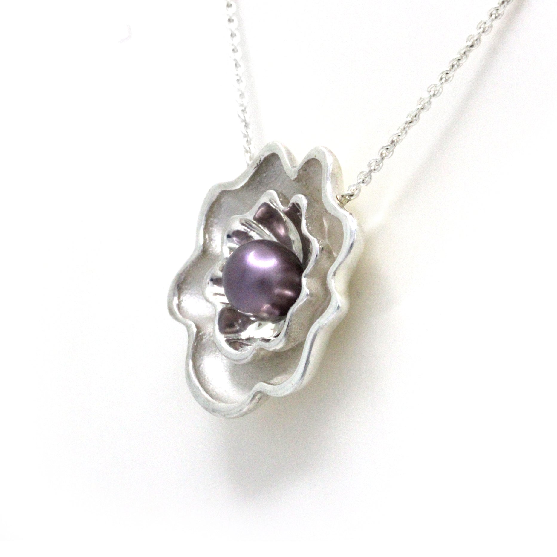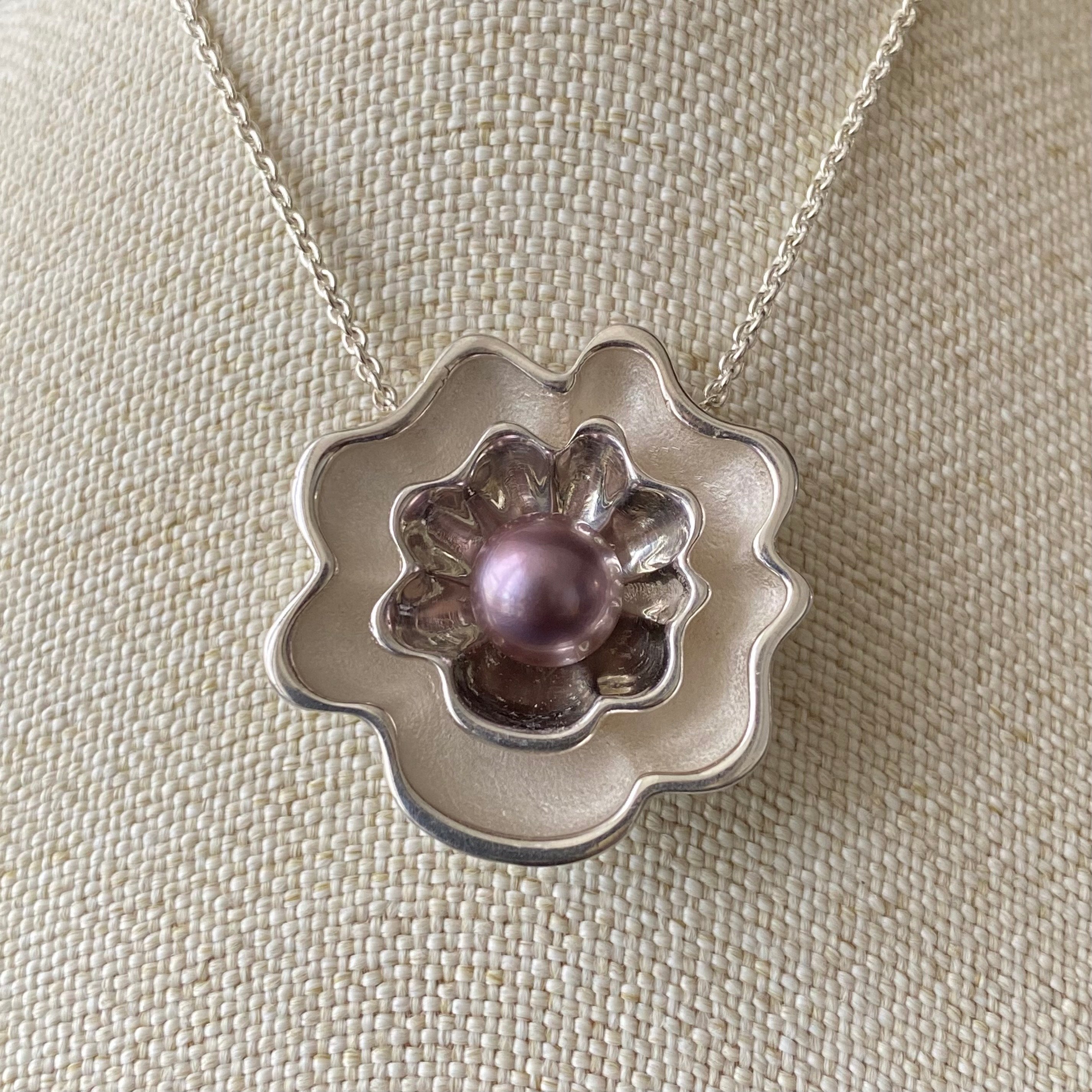 This is a new necklace designed by "NS" made by hand on sterling silver (0.925) with an stunning colorful Cortez Pearl. This pearl has an amazing pink and purple blend, very special, and has a very shinny surface. Features as incredible as its unique shape.
