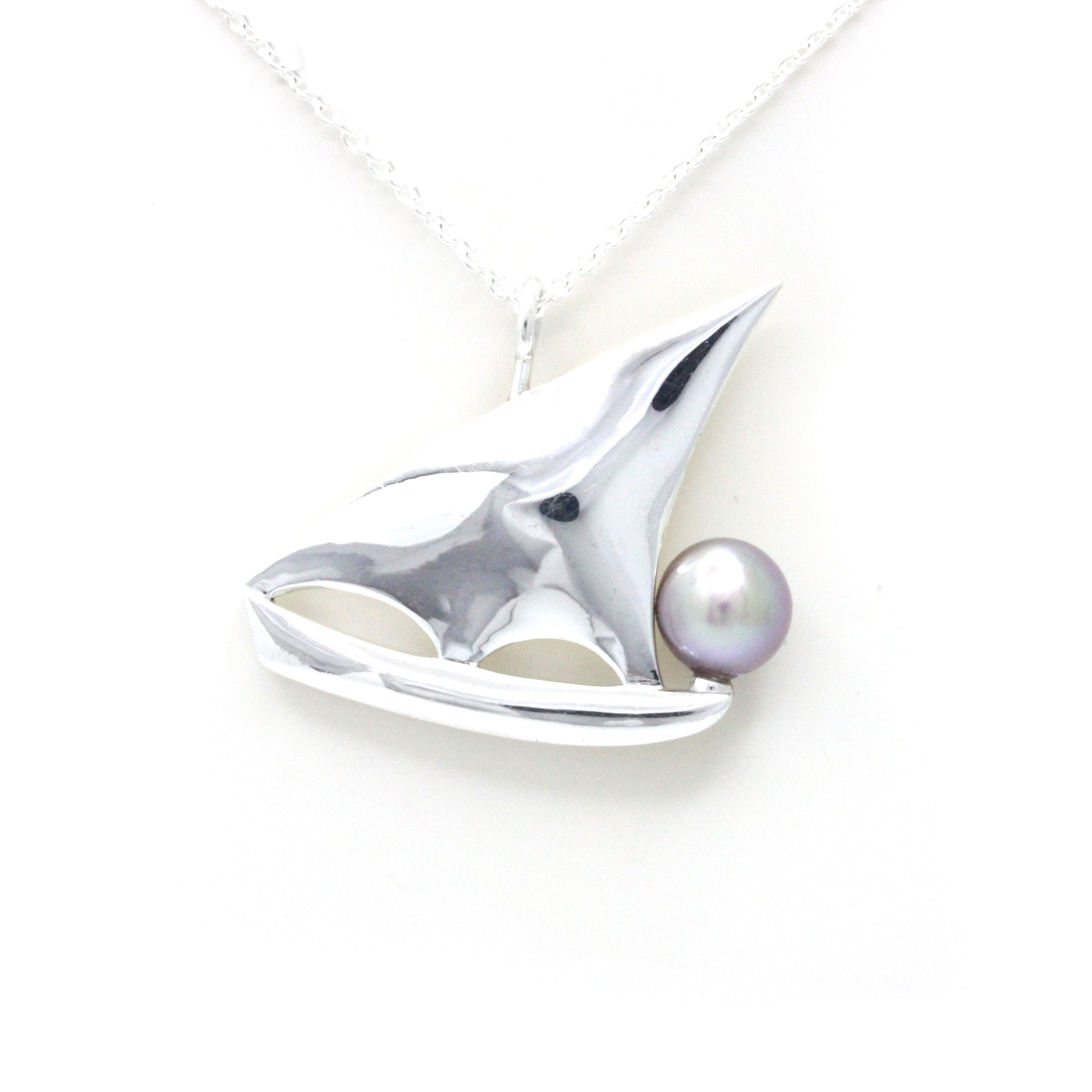 Un hermoso collar de estilo moderno y contemporáneo se añade a nuestro catálogo, trabajado en plata 0.925 por la diseñadora mexicana "NS". Para darle vida a la pieza, se le colocó una Perla del Mar de Cortez.